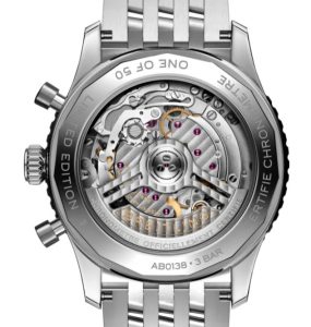 The stainless-steel rim of the sapphire crystal caseback is engraved with “One of 50” and “Limited Edition”, affirming its exclusivity.