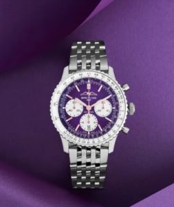 A new Breitling Navitimer B01 Chronograph is released featuring a magnificent bold purple satiné translucide dial in a special celebration of the partnership with Cortina Breitling replica watches UK.